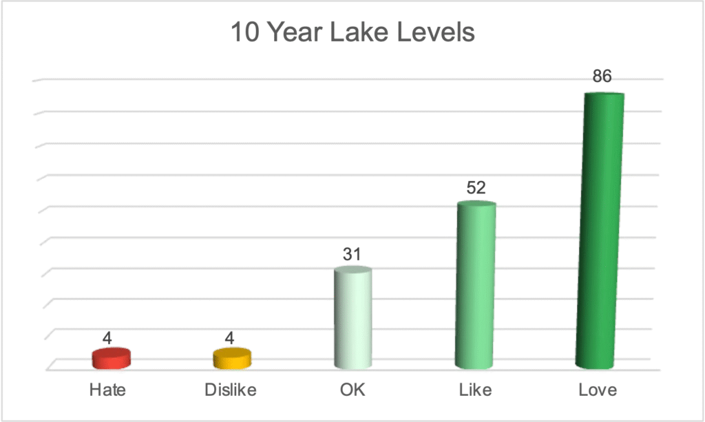 78% of responses rated 10-Year water levels as “Like” or “Love”