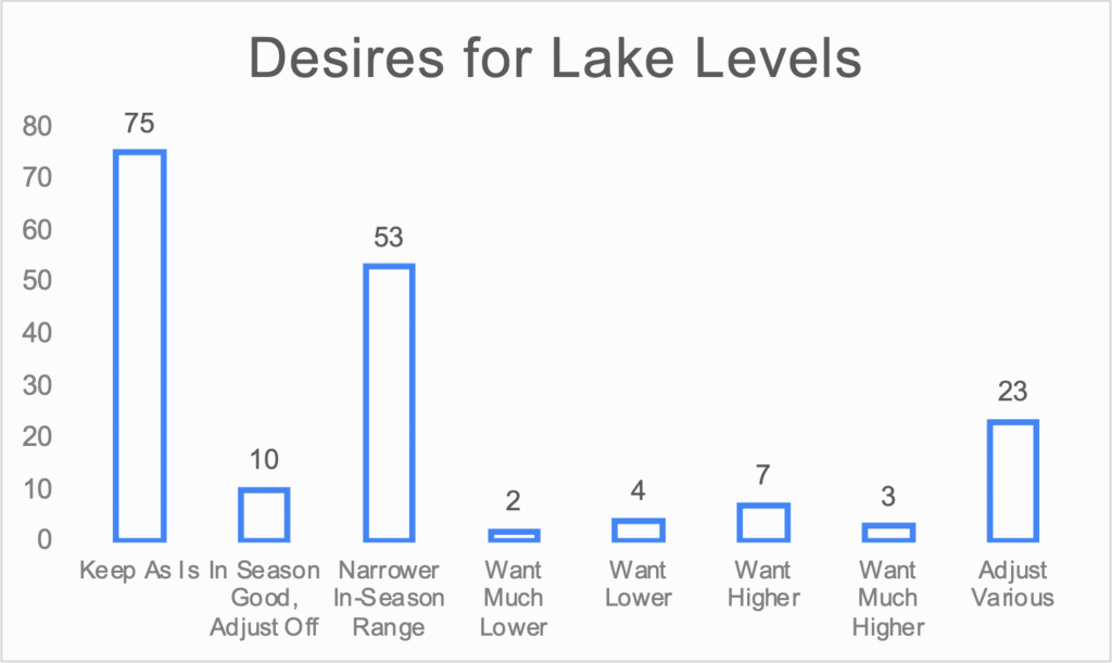 Only 6 respondents wanted the lake lower in all respects, while 10 respondents wanted it higher in all respects.