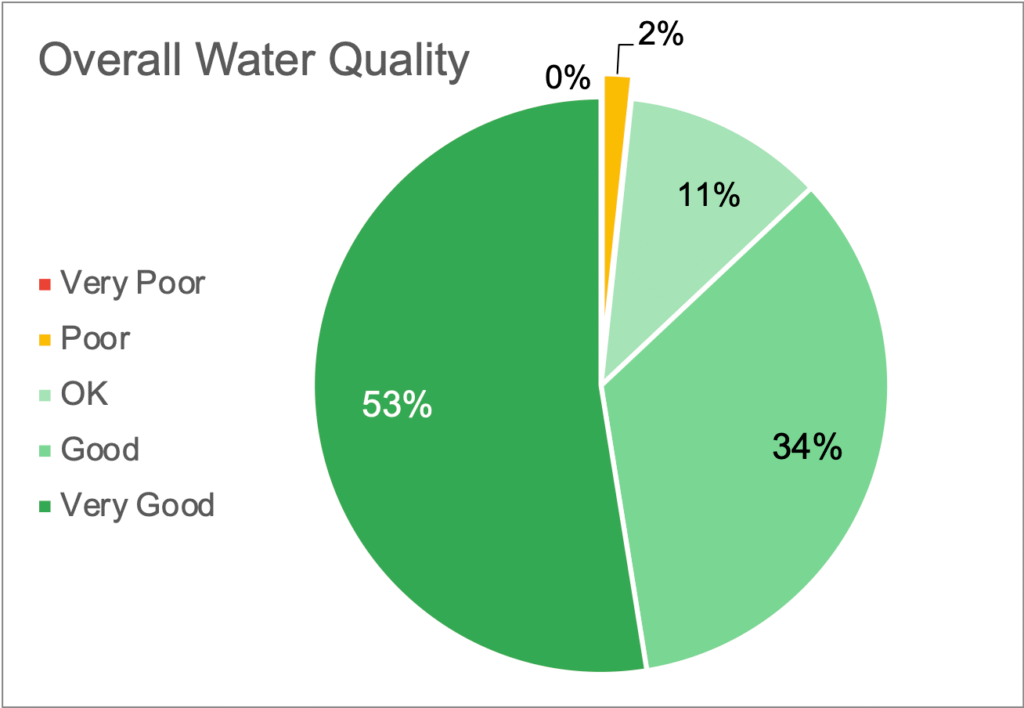 87% of the responses rated water quality as good or very good, and no one rated water quality “very poor”.