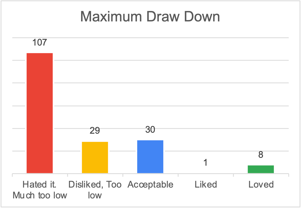 Roughly 78% of responses indicated that they disliked or hated the maximum drawdown.