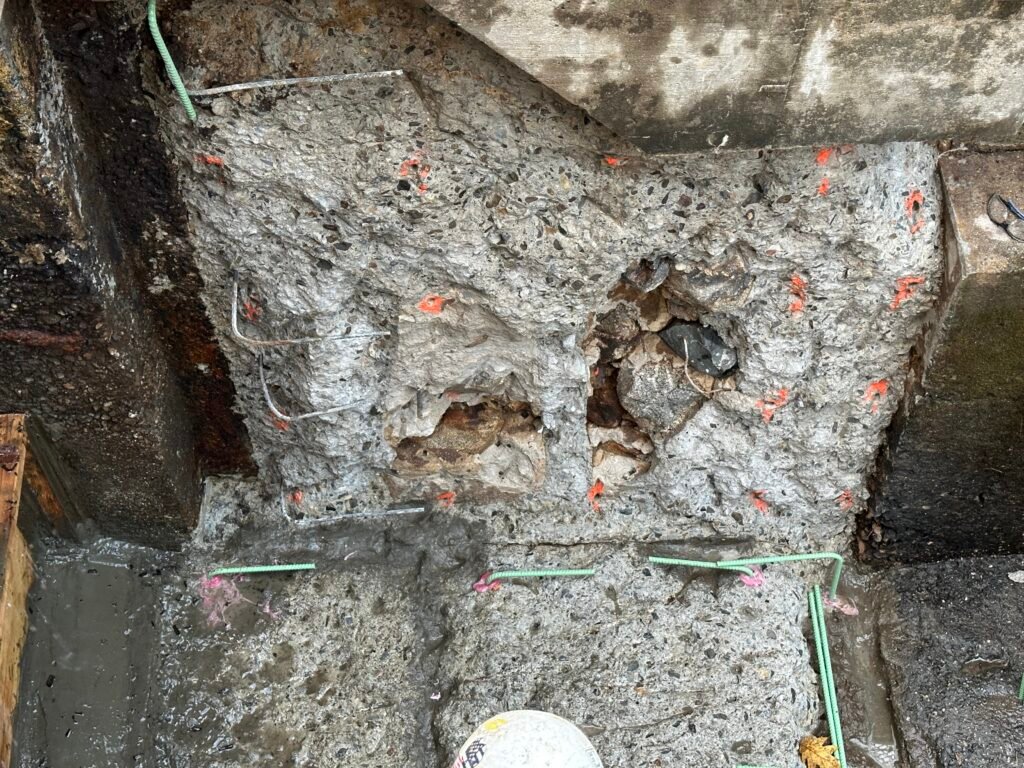 Instead we held a work party on 9/7 to remove debris, apply temporary patches to damaged areas, and better identify areas in need of repair, effectively performing the visual assessment ourselves. We discovered more extensive damage to the concrete than previously identified, so we increased the proposed budget for repairs and set our fund raising goal to $35,000.