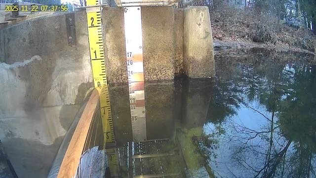 We are now in our off-season management period, so we’ll generally not change the stop logs other than to maintain minimum flow so long as the pond is between -24″ and -30″ below the top of the dam and no weather events require changes.